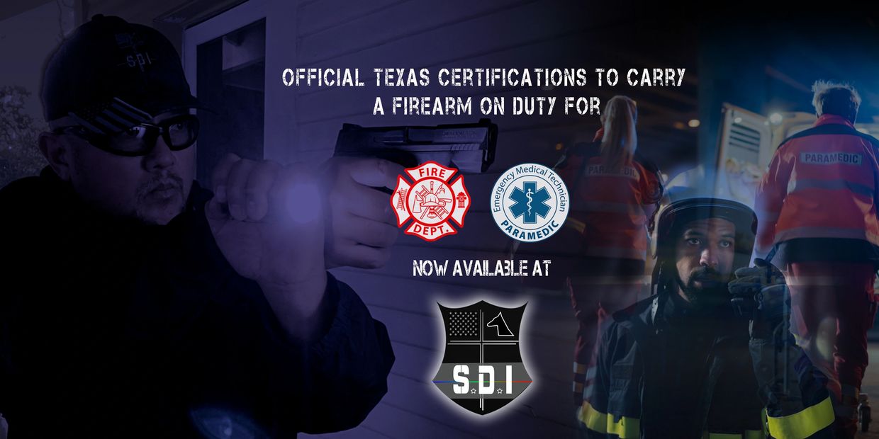 With the hundreds of firemen and first responders that have died responding to calls of a violent nature before law enforcement can get there, Texas has just passed a law allowing these heroes to carry a firearm while on duty. SDI can certify you and your team at our private training ranges in Bastrop. Please call 8053206624 for more info.